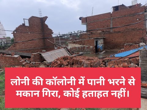 लोनी की कॉलोनी में पानी भरने से मकान गिरा, कोई हताहत नहीं।